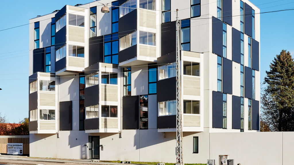Teine näide on korruselamu Taanis. Hoone näeb välja täiesti tavaline ning võiks vabalt sobida ka Eestisse.